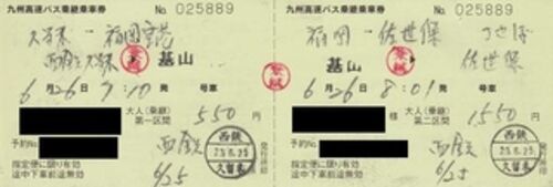 西鉄久留米から高速基山経由で佐世保までの乗継乗車券です。予めバスセンターなどで購入する必要があります。 九州各地の高速バス同士を、鳥栖JCTに比較的近い高速基山停留所*1で乗り継ぐことができます。その際、予め乗車券を購入しておくと乗継運賃が適用…