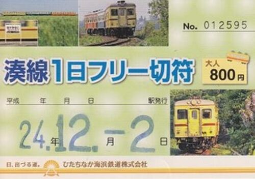 ひたちなか海岸鉄道湊線の1日乗車券です。土日祝日に販売しています。 勝田から阿字ヶ浦までの片道運賃が570円で、この切符の販売額は800円なので、普通に全線を往復するだけでも元を取る事ができます。 本当は復路の那珂湊駅でも途中下車したかったのですが…