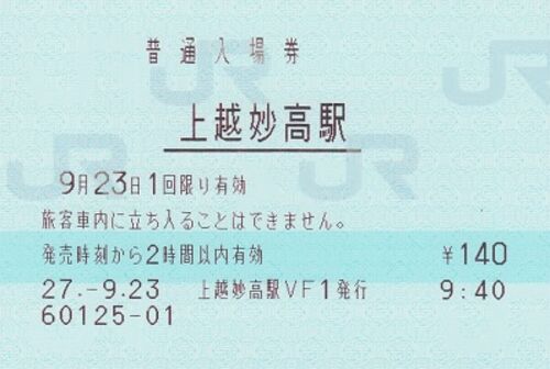 上越妙高駅の入場券です。 上越妙高駅の駅舎 上越妙高駅は新潟県上越市にある駅で、JR東日本・JR西日本の北陸新幹線と、えちごトキめき鉄道の妙高はねうまライン(旧・信越本線)が乗り入れています。北陸新幹線は上越妙高駅がJR東日本とJR西日本の境界駅と…