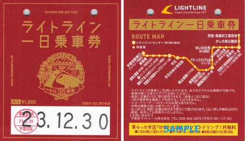 宇都宮ライトレールの一日乗車券です。 宇都宮ライトレールは2023年8月に開業した路面電車路線です。 宇都宮駅の東口を発着していて、芳賀町までを結んでいます。 路面電車路線として新規に開業したのは、富山県高岡市を走る万葉線以来75年ぶりなんだそうで…